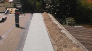 - Schotter zurücklegen und gleichmäßig auf der Dachfläche verteilen.´
