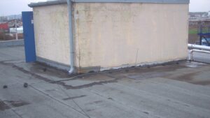 - Gullyeinläufe abdichten. Bitumenreste und aufstehende Pappe in diesem Bereich abscheren. Anschließend wird der Gully fachgerecht in die Dachhaut eingebunden. Bei Bedarf werden die vorhandenen Gullys ausgebaut und durch neue Gullys ersetzt, welche dann eingelassen montiert werden.