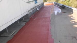 - Über die gesamte Fläche wird satt und vollflächig eine ein-komponentige, elastische Beschichtung aufgetragen. Materialverbrauch ca. 1,5 – 2,0 ltr/m². In der Beschichtung wird eine Synthesefaservlies eingearbeitet als Armierung, vor die Beschichtung nochmals aufgetragen wird. So erhalten Sie eine durchgehende einheitliche Fläche ohne Nähte und Stöße.
