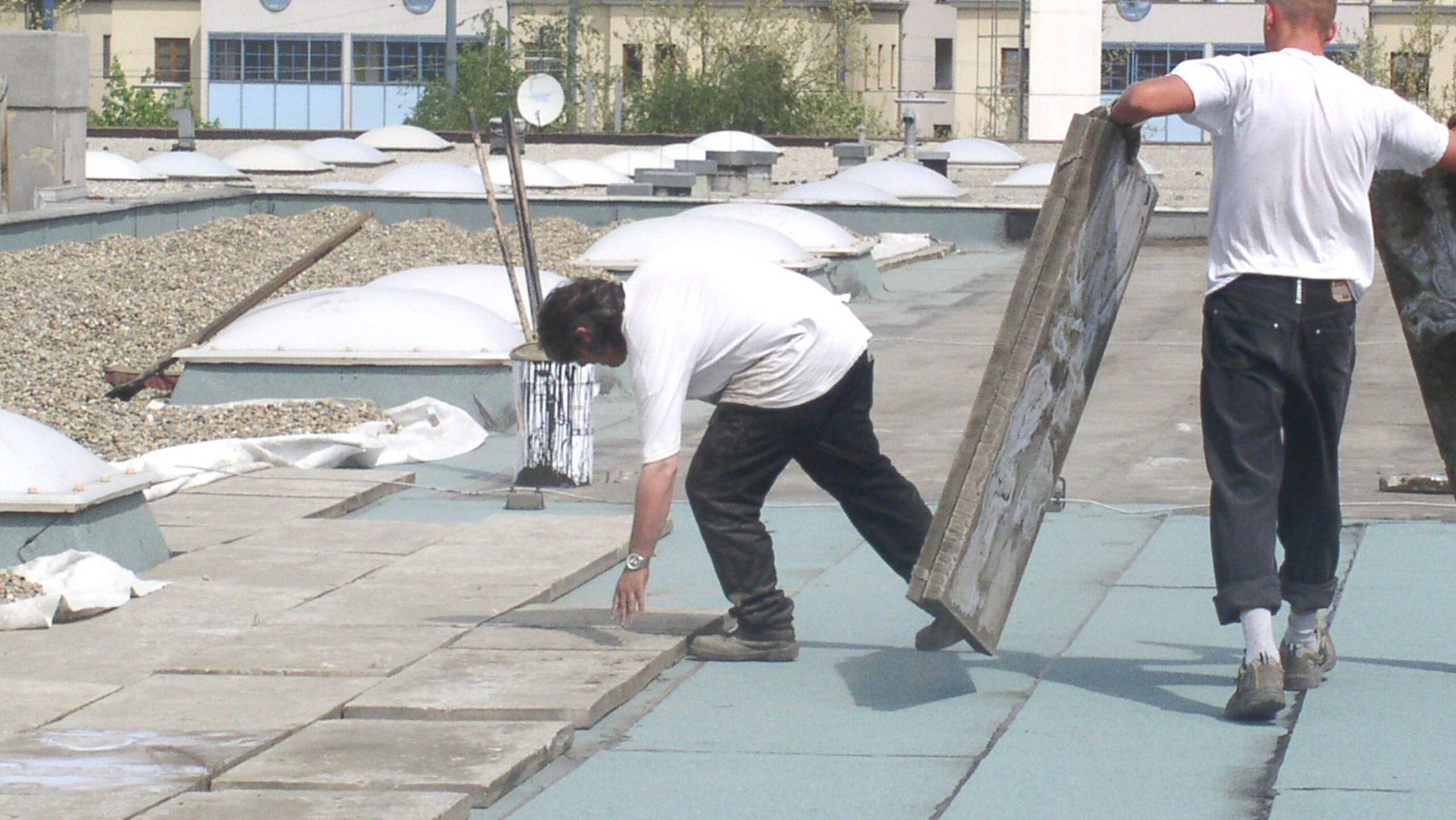 Sanierung Umkehrdach (Wärmedämmung liegt auf die Dachhaut) mit Plastomerbahnen